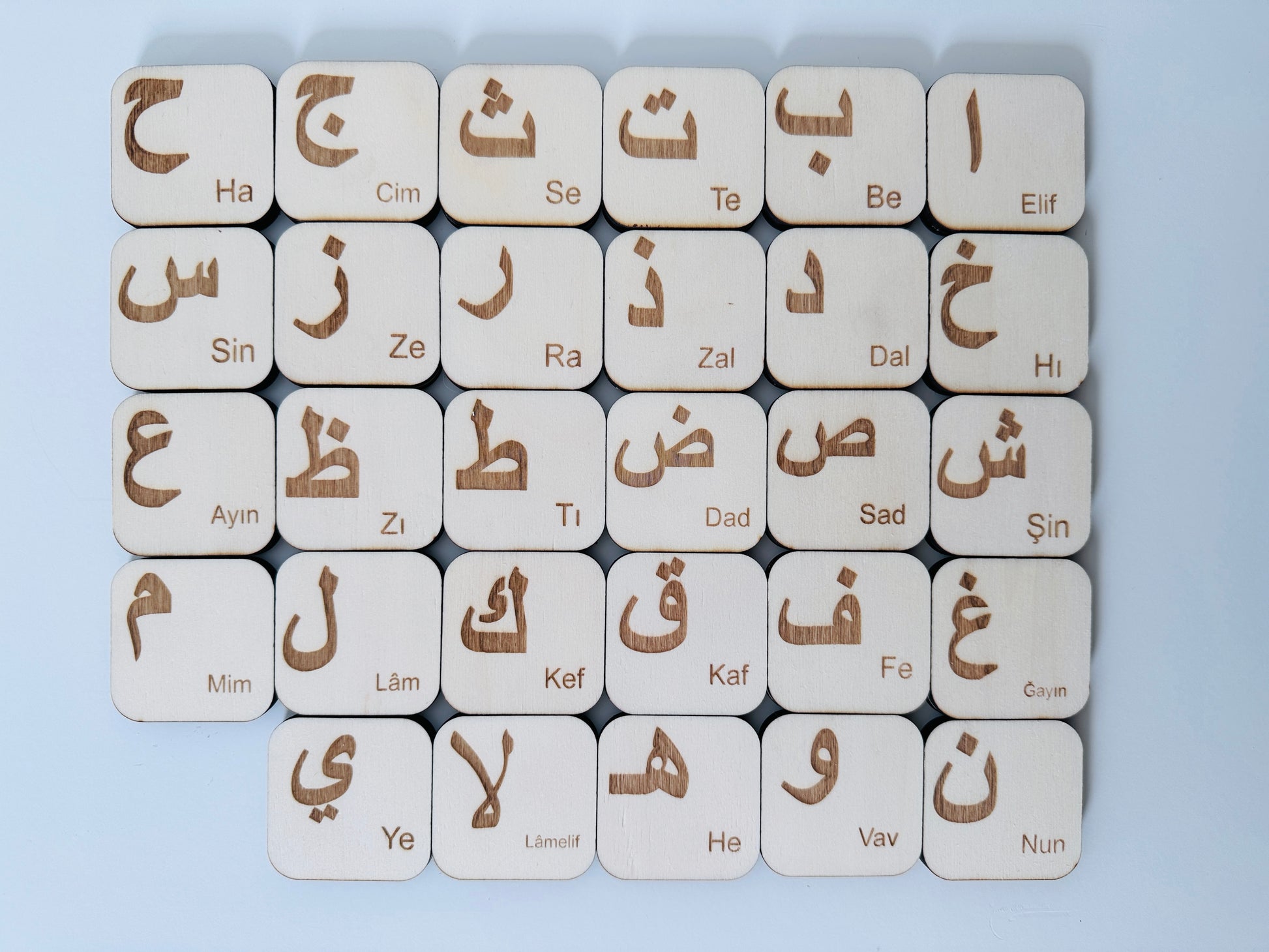 Memory Spiel für Kinder - Arabisches Alphabet aus Holz