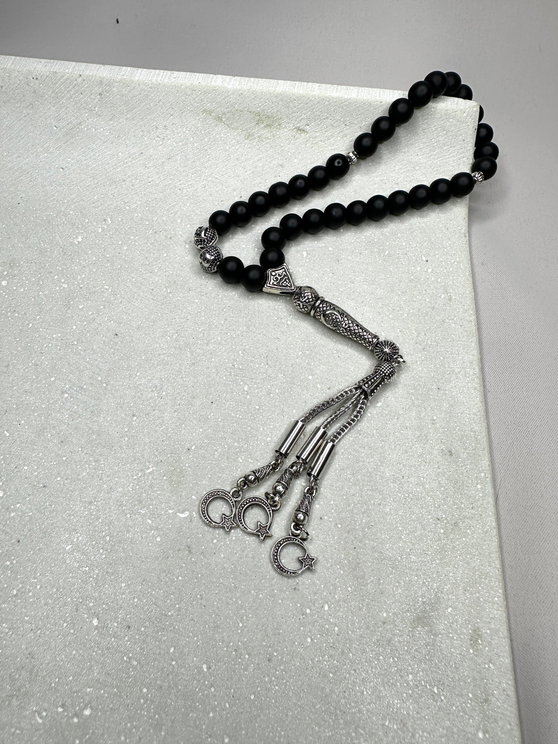 Personalisierte Tesbih aus Natursteinperlen - Onyx matt